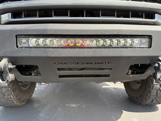 Chassis Unlimited Steel Front Bumper with Rigid Light Bar + Pod Lights